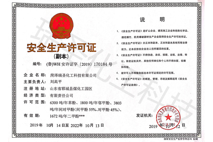 菏澤瑞圣化工科技有限公司是國(guó)內(nèi)酚類產(chǎn)品的生產(chǎn)企業(yè)。公司現(xiàn)有年加工粗酚20000萬(wàn)噸的生產(chǎn)裝置及能力,可生產(chǎn)苯酚、鄰甲酚、間對(duì)甲酚、二甲酚等產(chǎn)品。產(chǎn)品廣泛應(yīng)用于合成樹脂、香料、染料、絕緣材料、阻燃劑、農(nóng)藥、醫(yī)藥、中間體等精細(xì)化工領(lǐng)域。本公司以誠(chéng)為本,信譽(yù)保證,靠過(guò)硬的產(chǎn)品質(zhì)量和完善的服務(wù)贏得了國(guó)內(nèi)外廣大用戶的贊譽(yù)。產(chǎn)品暢銷國(guó)內(nèi)二十多個(gè)省市地區(qū),并地打入了國(guó)際市場(chǎng),產(chǎn)品遠(yuǎn)銷意大利、巴西、印度、韓國(guó)、日本、臺(tái)灣等國(guó)家和地區(qū)。 公司坐落在菏澤市鄆城縣煤化工業(yè)園區(qū)。生產(chǎn)及檢測(cè)設(shè)備精湛,管理機(jī)制科學(xué),并擁有技術(shù)隊(duì)伍,產(chǎn)品質(zhì)量達(dá)到標(biāo)準(zhǔn)。 公司 2024年為打破國(guó)外對(duì)光刻膠及芯片樹脂所需間對(duì)甲酚,鄰甲酚,對(duì)甲酚的壟斷,經(jīng)過(guò)與國(guó)內(nèi)知名院校合作研究,設(shè)備進(jìn)行技改工藝進(jìn)行調(diào)整,產(chǎn)品質(zhì)量完全滿足光刻膠樹脂的需要。改變了長(zhǎng)期依賴進(jìn)口的局面,為中國(guó)芯國(guó)產(chǎn)化貢獻(xiàn)了一份力量。 可靠的產(chǎn)品、可靠的質(zhì)量、可靠的信譽(yù)、完善的服務(wù)是我們的宗旨,我們將竭誠(chéng)與海內(nèi)外各界朋友精誠(chéng)合作,共圖發(fā)展,攜手共進(jìn),創(chuàng)造你我共同的未來(lái)。 企業(yè)的使命感與社會(huì)的責(zé)任感讓我們今天在